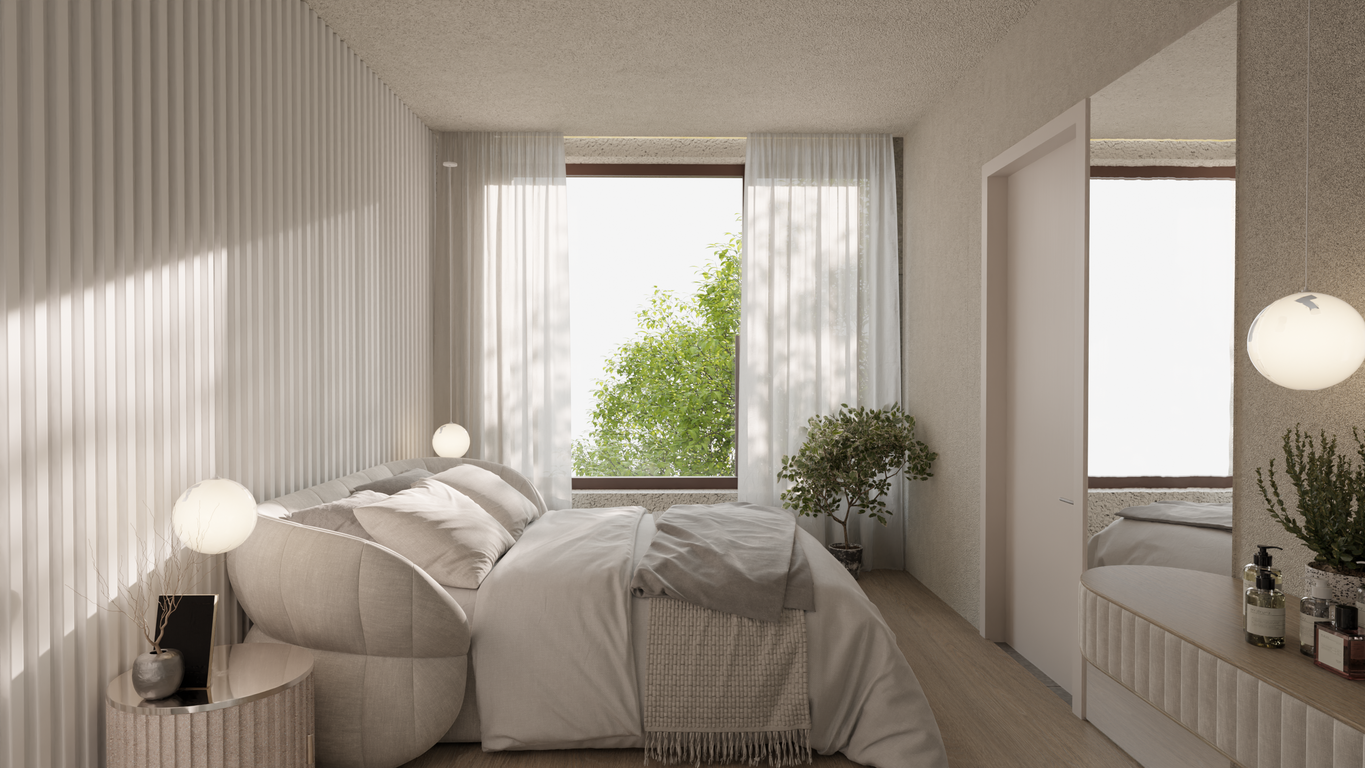Bivalni prostori so svetli, zračni in prostorni, večina ima vsaj en zunanji prostor, ki vam omogoča, da uživate v razgledu na bližnjo okolico in mogočno gorovje. V sosesko je maksimalno integrirano zelenje, kar bo prispevalo k vedno svežem zraku in prijetni temperaturi.