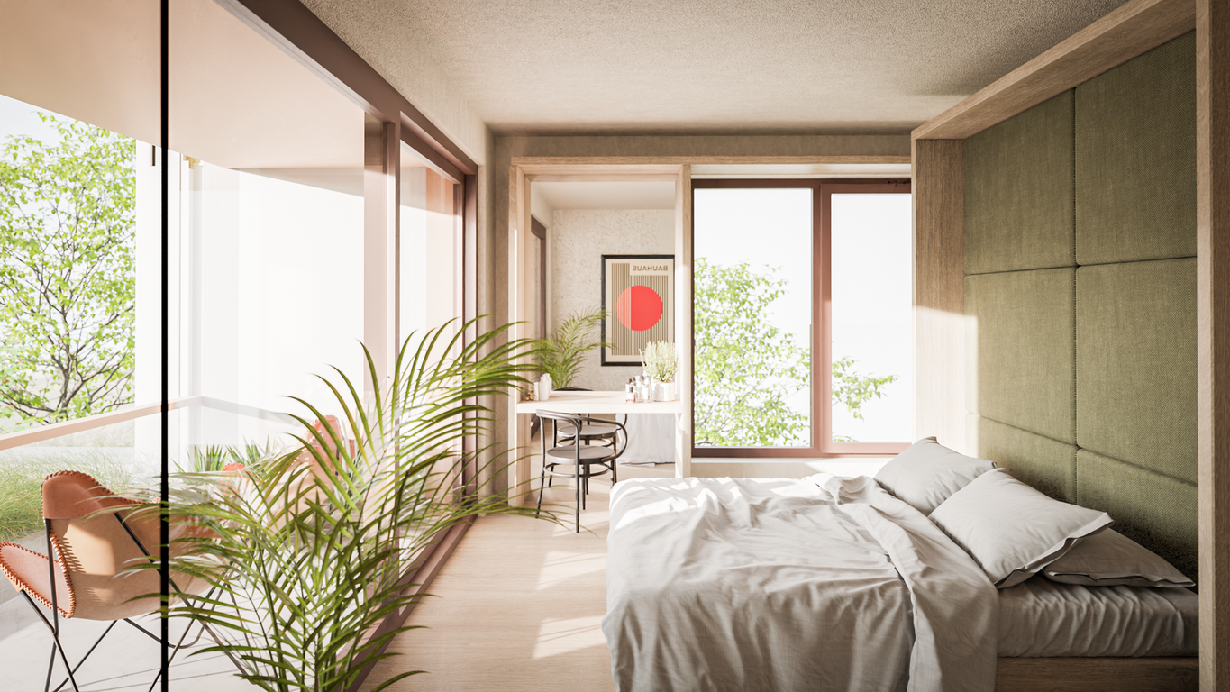 Bivalni prostori so svetli, zračni in prostorni, večina ima vsaj en zunanji prostor, ki vam omogoča, da uživate v razgledu na bližnjo okolico in mogočno gorovje. V sosesko je maksimalno integrirano zelenje, kar bo prispevalo k vedno svežem zraku in prijetni temperaturi.